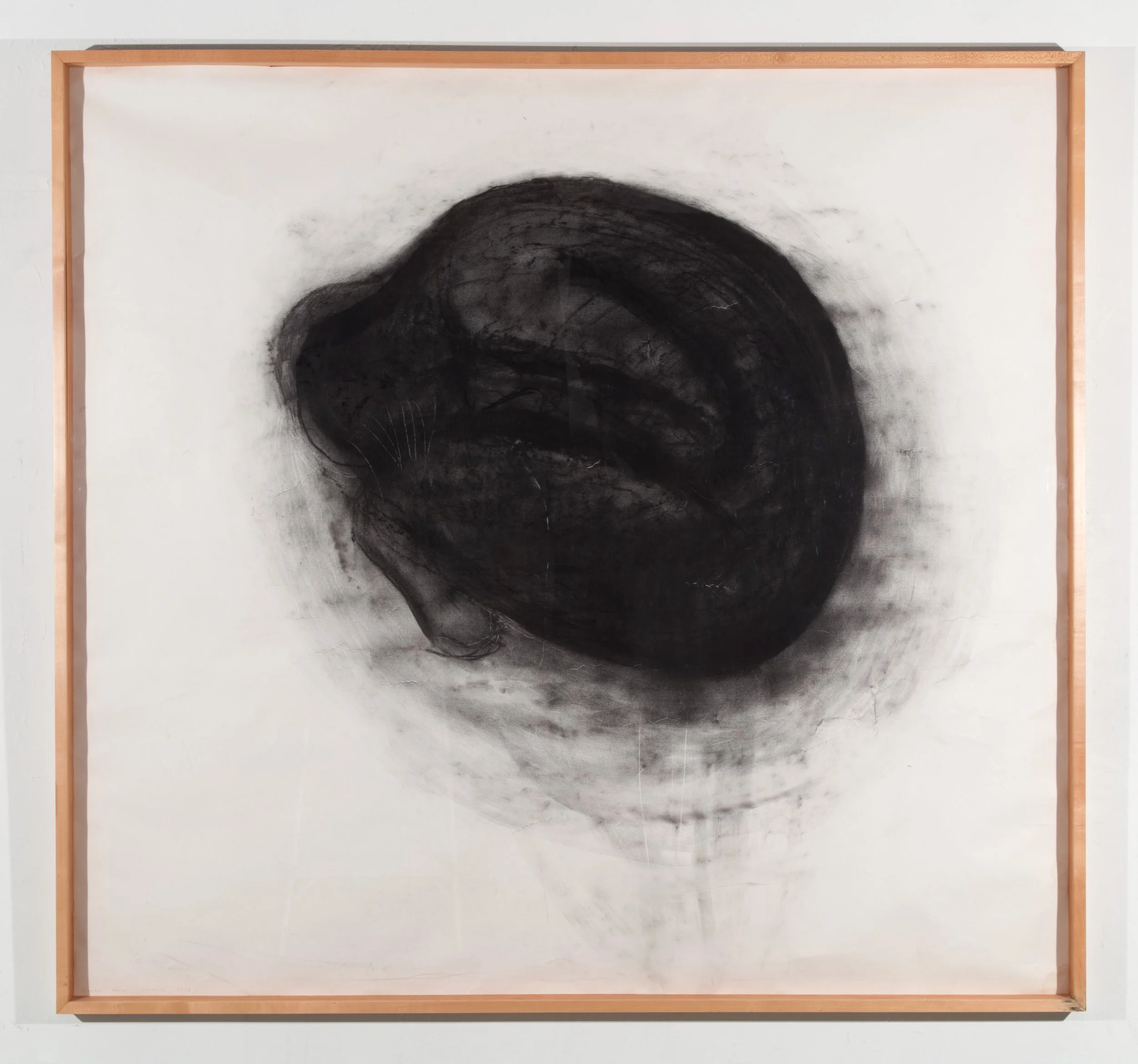 Charcoal on photographic backdrop paper, 52 x 55 inches. Courtesy the artist. Photographic documentation by Jean Vong