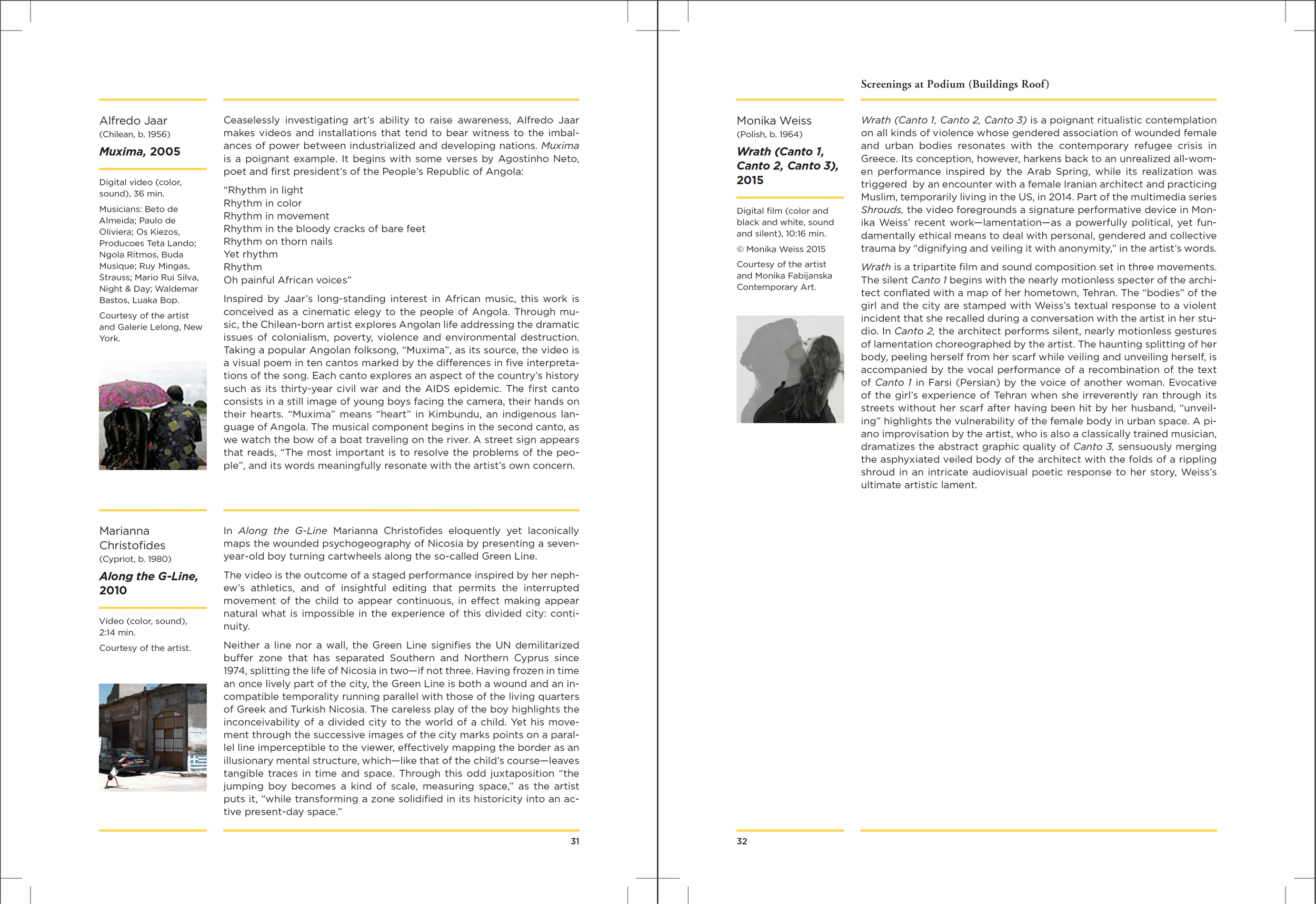 below: pages from Fireflies in the Night Take Wing. Video Art Survey, Stavros Niarchos Foundation Cultural Center, 2016